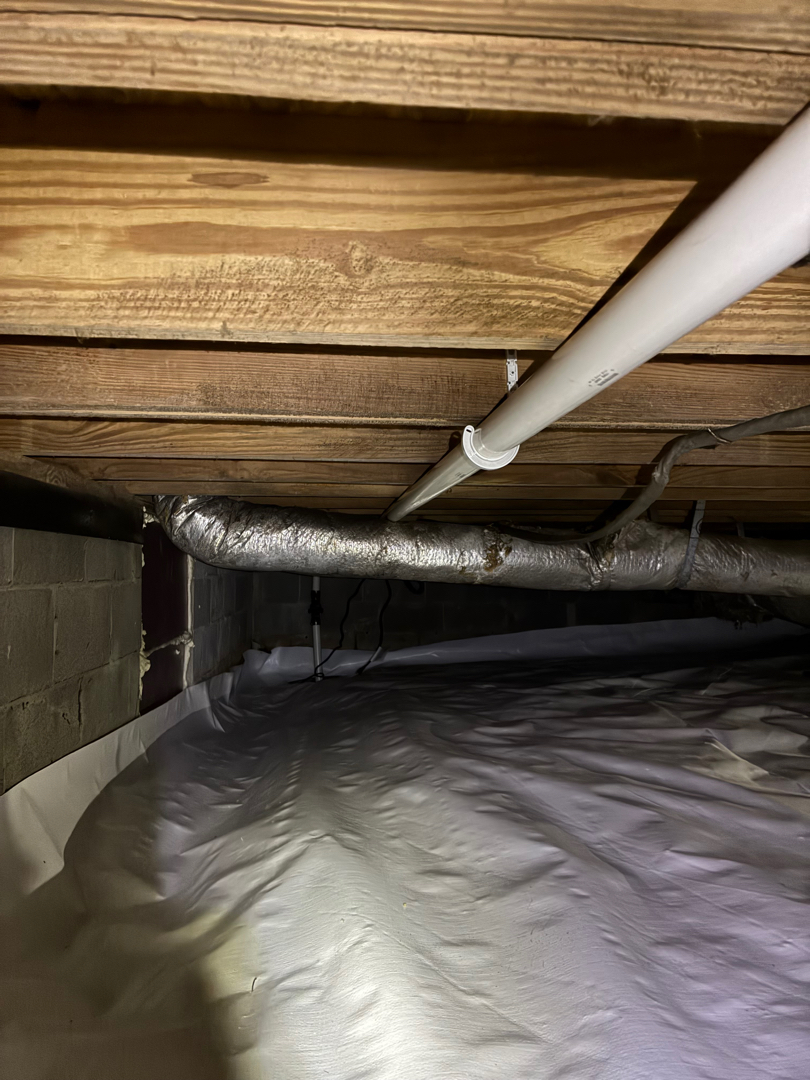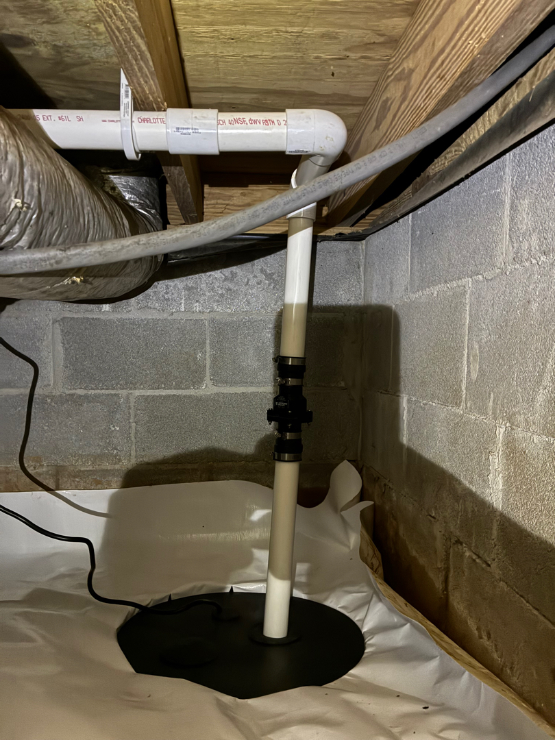 To resolve the excessive humidity issue, we implemented a complete moisture management system tailored to the crawlspace. We began by removing the existing insulation to eliminate any materials that may have been holding moisture. Next, we installed a full perimeter drainage pipe system to effectively collect and direct groundwater to a newly installed sump pump basin, equipped with a reliable 1/3 HP sump pump and a proper discharge line to carry water safely away from the home. To further control moisture, we sealed off the crawlspace vents and installed a 9 mil vapor barrier to reduce moisture intrusion from the ground and outside air. Additionally, we installed a Sierra Watchdog NXT 85-pint dehumidifier to regulate humidity levels and maintain a dry environment. Finally, we custom-built and installed a durable PVC crawlspace door to ensure the space remains properly sealed, providing long-term protection and improved air quality for the home.