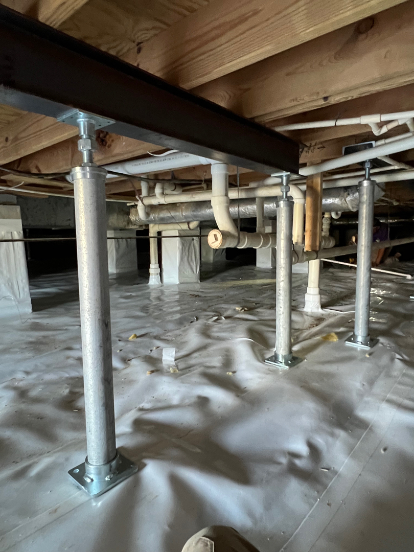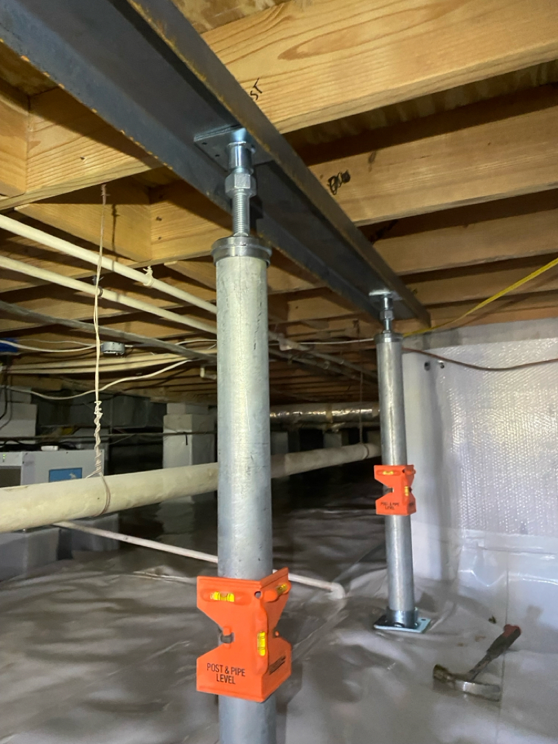 To restore the structural integrity of the home, our team implemented a targeted reinforcement plan within the crawlspace. We began by doubling, or scabbing, the weakened floor joists to strengthen and stabilize the existing framework. To provide additional support, we installed a steel beam to properly distribute the load and eliminate sagging areas. We then added PowerPost floor supports, ensuring the structure was securely lifted and held in place for long-term stability. As part of the overall improvement, we also replaced the HVAC register run to ensure proper airflow and prevent any interference with the newly reinforced system. This comprehensive approach effectively corrected the structural issues and restored confidence in the home’s foundation.
