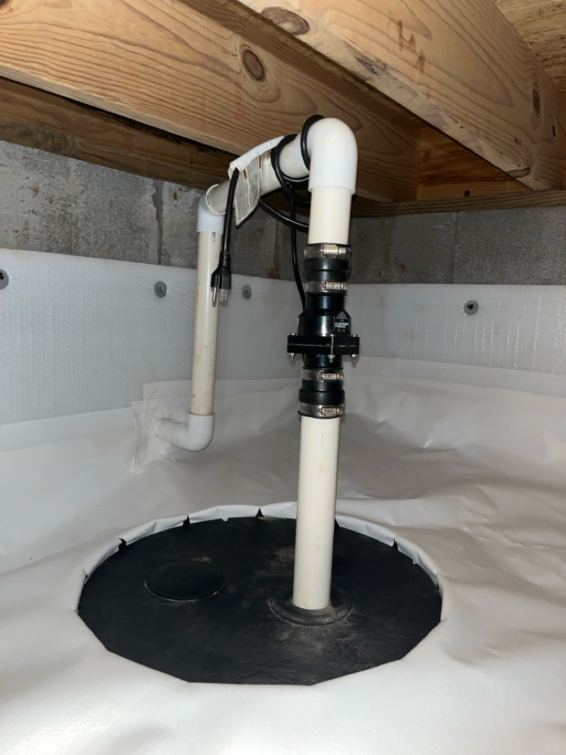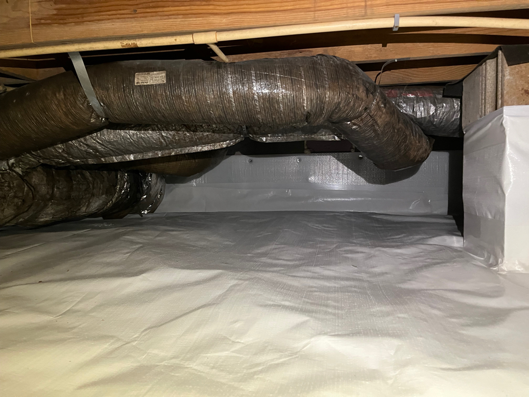 To effectively resolve the fungus and mildew issue in the crawlspace, we installed a full-perimeter drainage system to capture and redirect groundwater away from the foundation. A sump pump basin paired with a 1/3 HP sump pump was added to efficiently remove collected water, along with a dedicated discharge line to carry it safely away from the home. We then encapsulated the crawlspace using an R-5 insulated system with a durable 15 mil floor liner, creating a sealed barrier against moisture intrusion. To maintain optimal humidity levels and prevent future microbial growth, we installed a Sierra Watchdog NXT 85 pint dehumidifier. Finally, we enhanced the integrity of the space by constructing and installing a custom PVC crawlspace door, ensuring a tight seal and long-term protection against outside air and moisture.